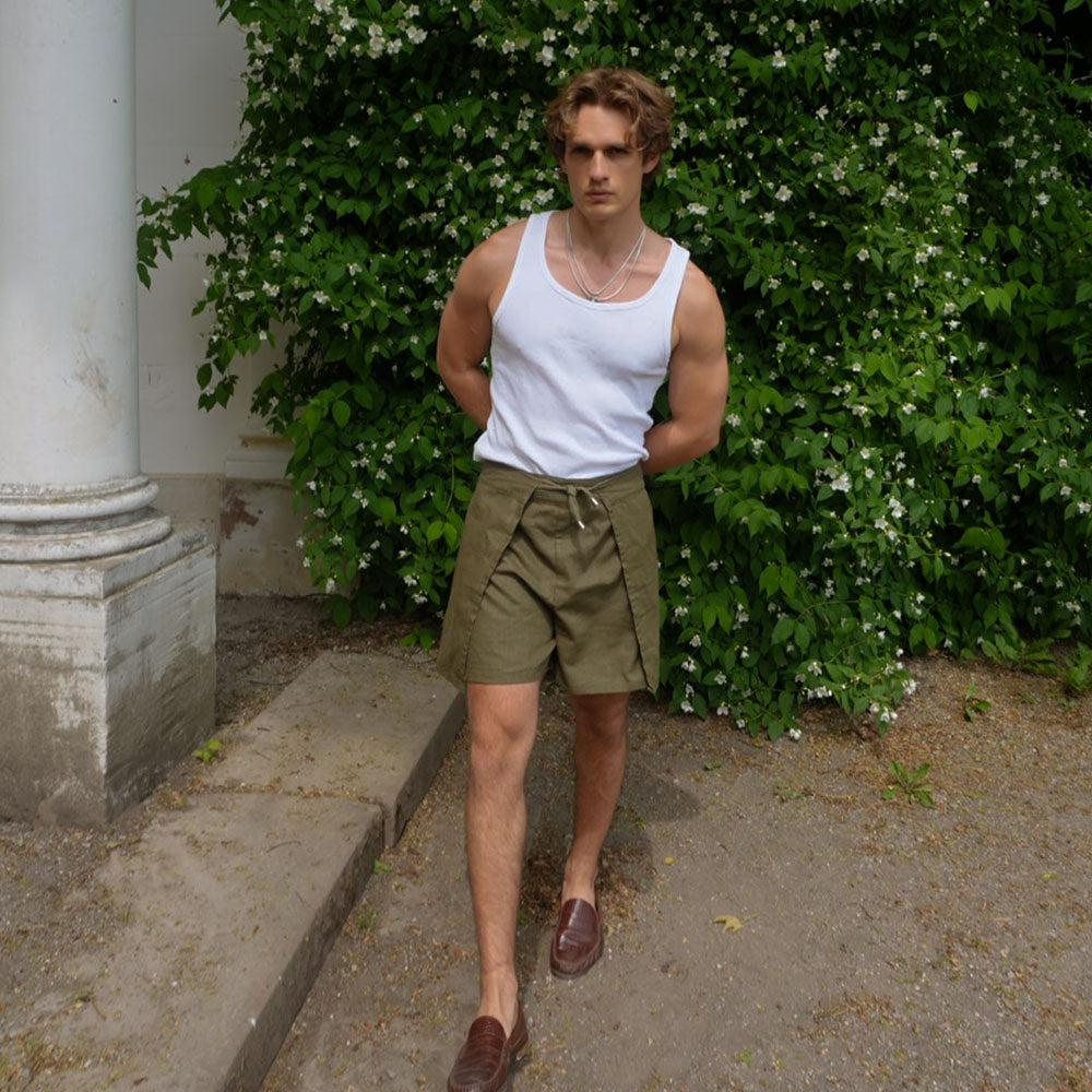 Linen Wrap Shorts - Olive Green